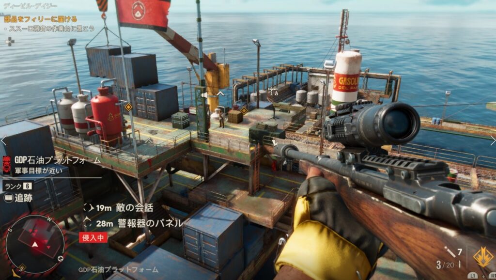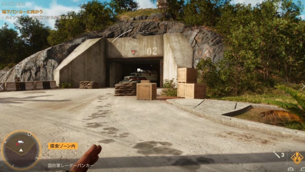 目的地の近くまで来たら、南側のフェンスを大回りしていくと正面入口の敵をやり過ごせます。