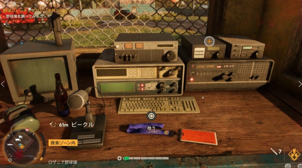 これで近くの倉庫が開けられるので、中に入りピッチングマシンを拾う。