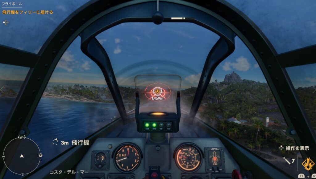 飛行機の操縦は初見だとちょっと難しいですね。この後のシナリオで飛行機を使うので、少し慣れておいた方がいいかも。