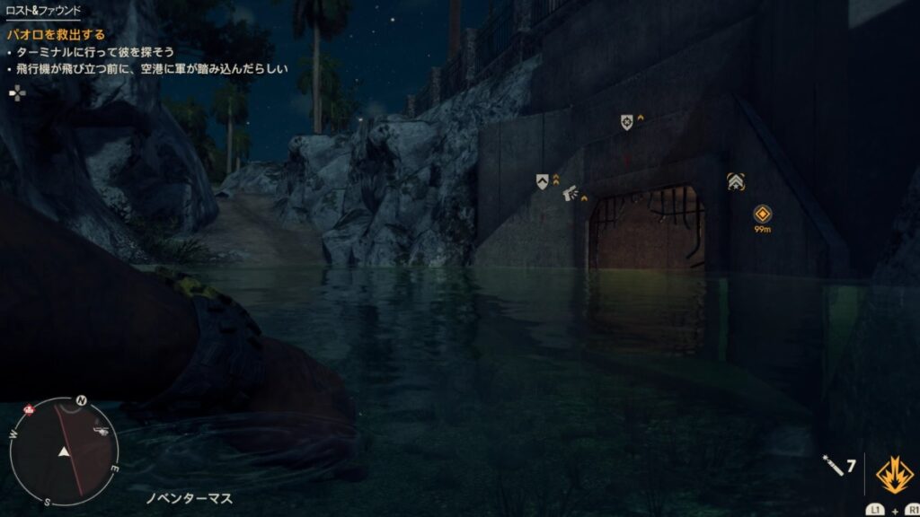 特に隠密行動をしろみたいなクエスト的なものはないですが、わたしは川沿いにある穴から内部に侵入しました。穴を通ってハシゴを登るとヘリコプターの近くに出られるので、目的の建物まで近くなります。