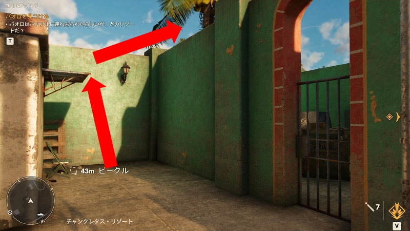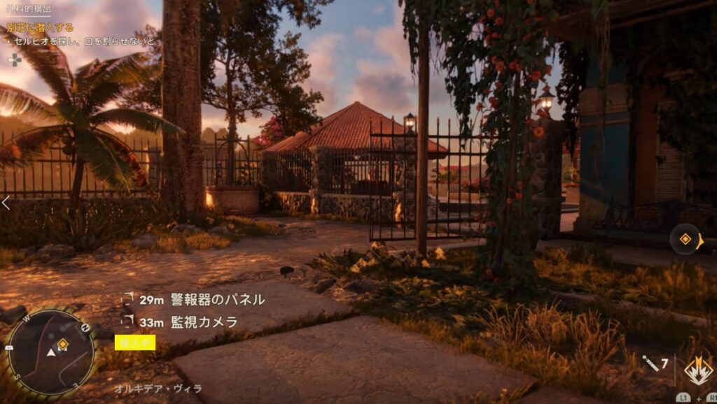 南側のツタを登っていくと上から警報器も壊せるし攻略しやすい。