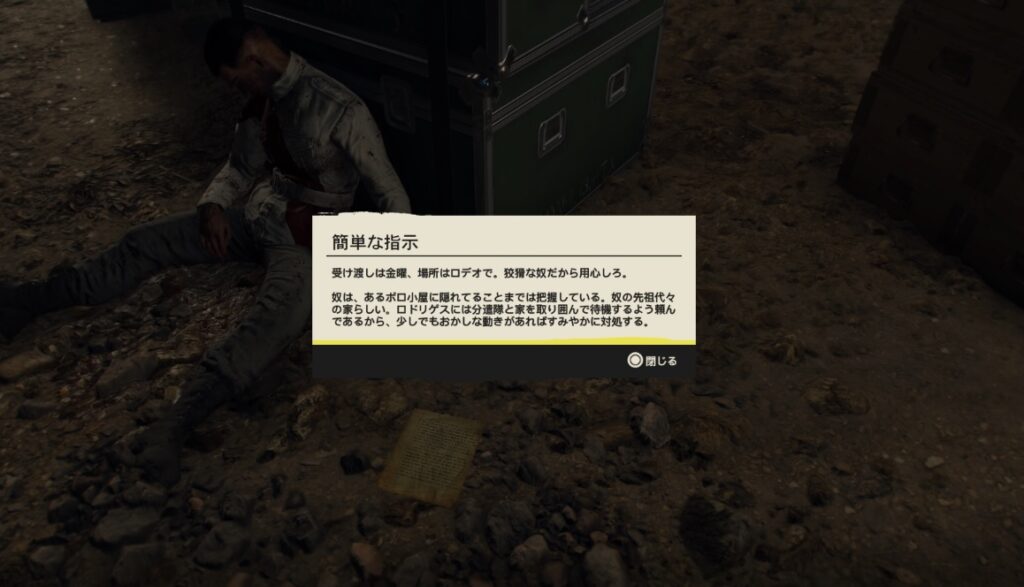 →半分に裂かれた手紙(前半) - 外の机の上のメモを読む