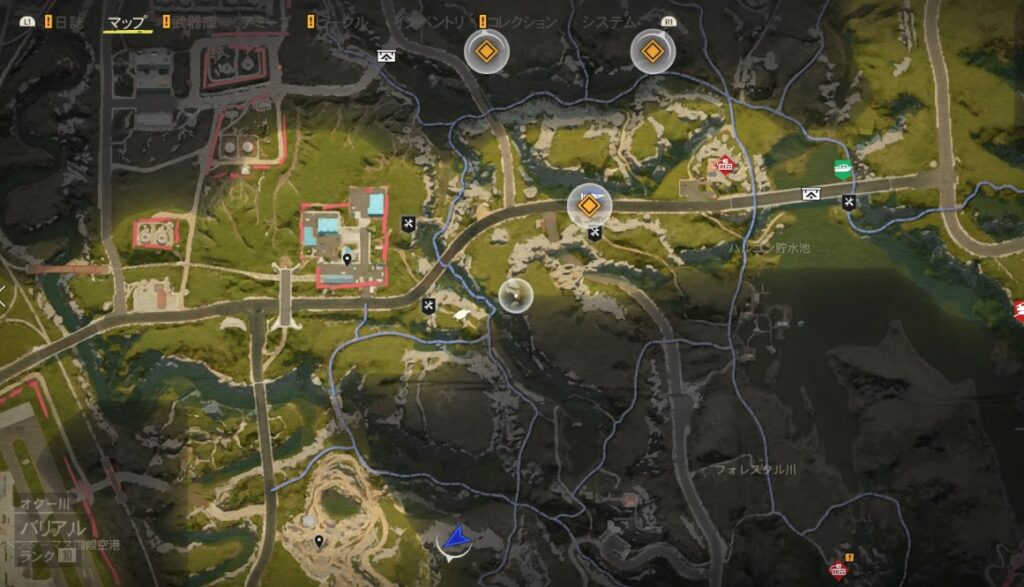 わたしはすでに占領済みのオクー川検問所へいきました。検問所にオレンジ色のカバン[抗生物質]が出現しているので入手します。