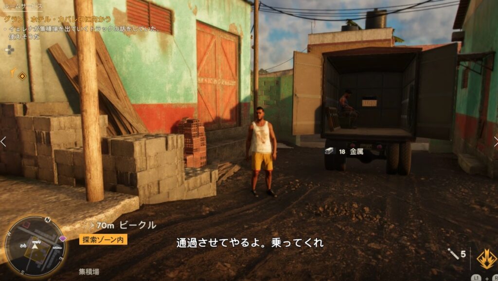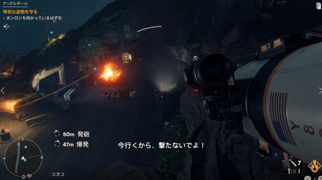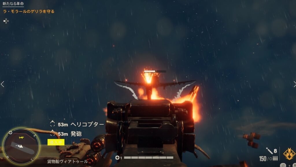 目的地のコンセプシオンはエリアの東端で現在地からだと結構遠くです。ヘリコプターなどで飛んで行ってもいいですが、道中対空砲が多数あります。筆者はビークルで行きました。