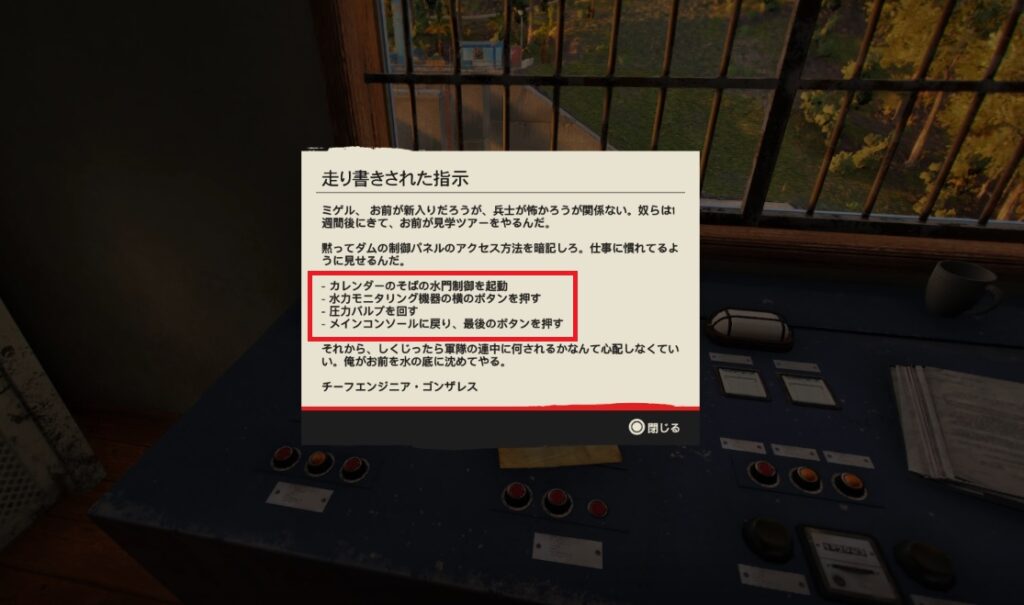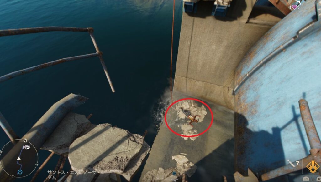 労働者から「ダムの小屋のカードキー」を拾い、扉を開け宝箱を回収すれば終了です。