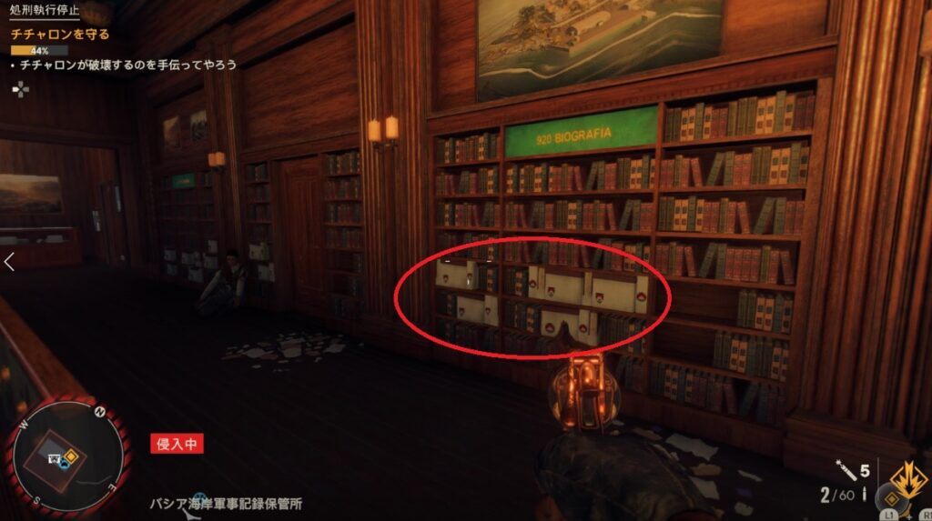 1階と2階の本棚にある白い資料を破壊します。