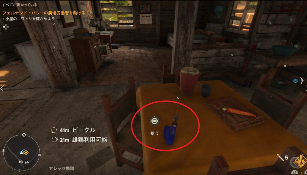 - 小屋の中で「エル・ガヨ・マグニフィコ(雄鶏)」を回収する