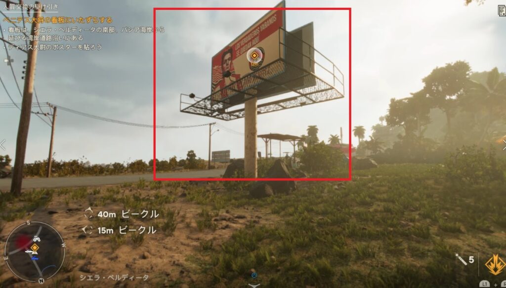 マップに目的地が表示されるので、そこへ行って写真がついているボードを破壊する