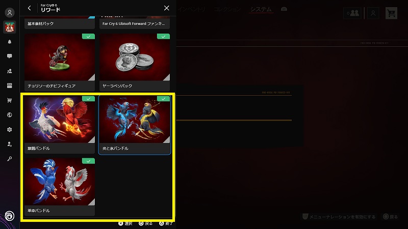 「システム」→「UBISOFT CONNECT」→「リワード」