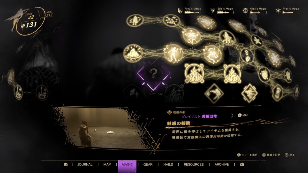 これ以外の魔法についてはマナを消費することで全てを習得できます。ただ、全てをアクティブにするにはかなりのマナが必要なので、探索をしっかりやってマナ溜りを回収しておく必要がありそうですね。
