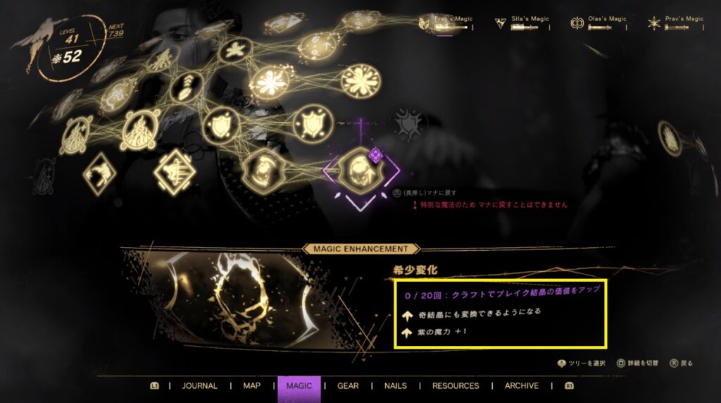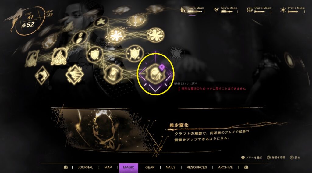 ただ、クラフト系の魔法を強化すれば奇結晶も作成することが出来ます。出現した場所を覚えていれば狩りに行ってもいいんですが、個人的には作っちゃた方が早いような気がしてます。