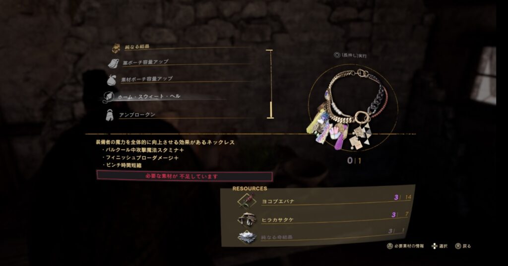 クラフト時に△ボタンを押すと必要素材の情報が確認できます。