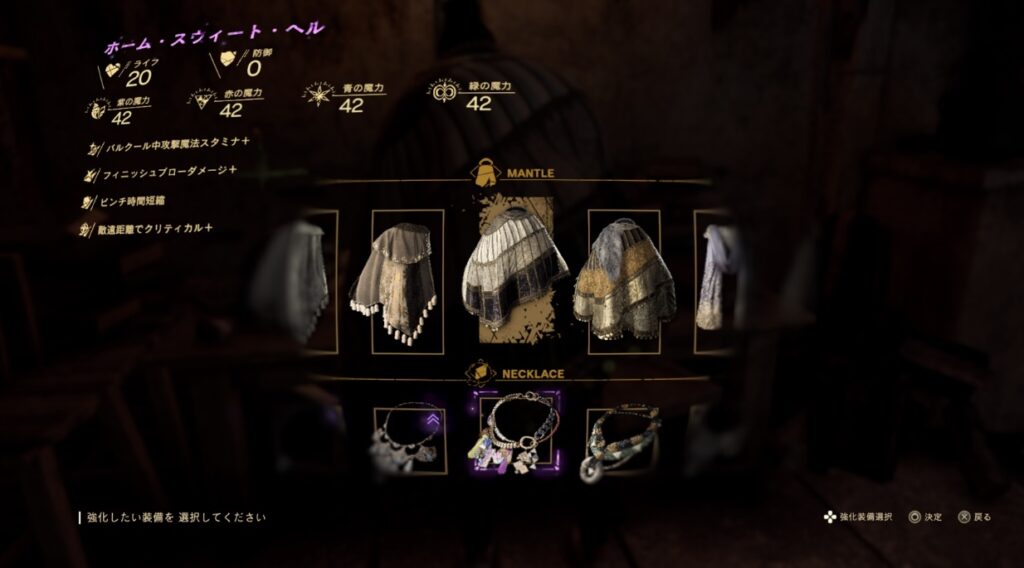 本作ではマント・ネックレスが装備品となっていますが、全体的な総数はそれほど多くありません。その中で最強となる装備はどれなんでしょうか?装備強化の仕組みも踏まえて考察してみました。