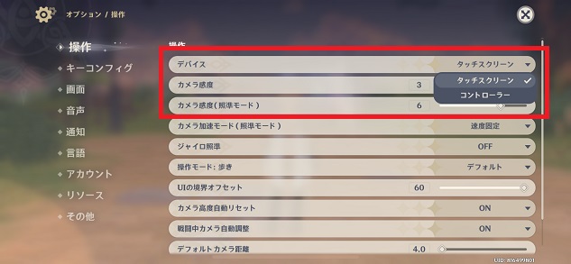 「メインメニュー」→「オプション」→「デバイス」を選んで、タッチスクリーンからコントローラーに変更します。とりあえずこれだけで使えるようになりました。