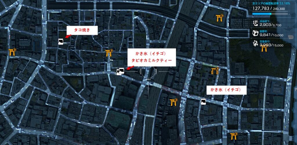 残りは全て拾って入手するものです。コーヒー牛乳とかはサイドミッション中に訪れる銭湯でしか拾った記憶がないので、入手場所が限定されているものもあると思います。