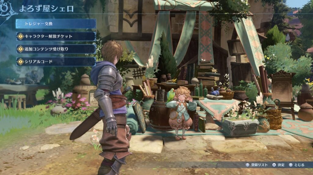 よろず屋にある「追加コンテンツ受け取り」の項目を選ぶと体験版のクリア報酬が入手できます。トトレジャー交換のチュートリアル中は「追加コンテンツ受け取り」が見えないので、トレジャー交換が終わったらもう一度話かけてみてください。