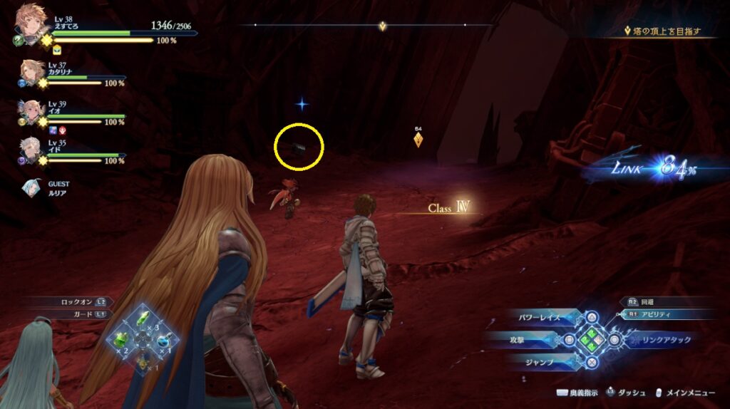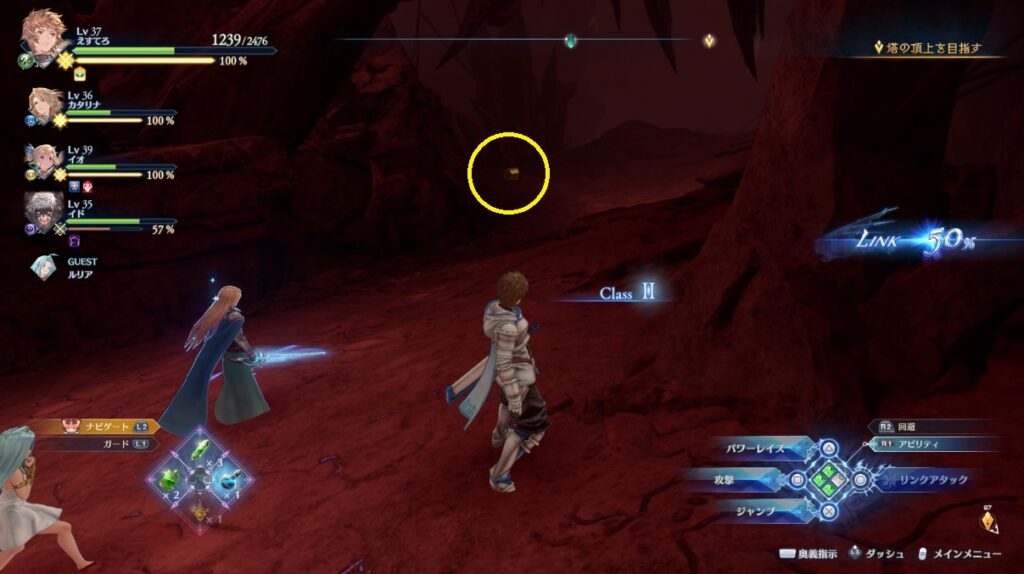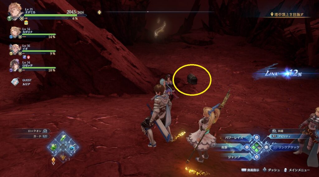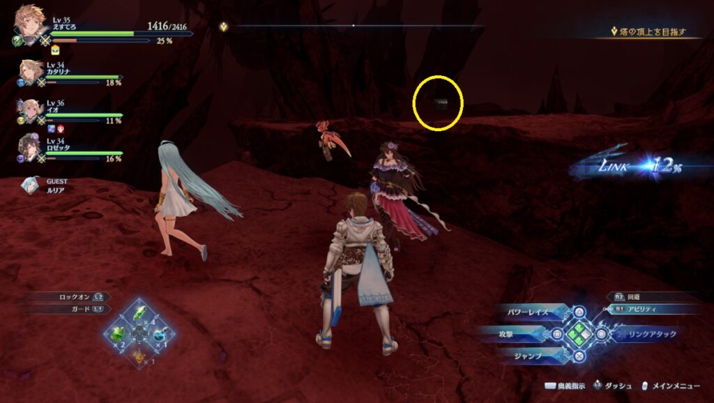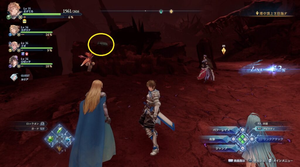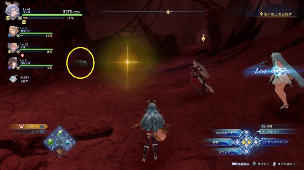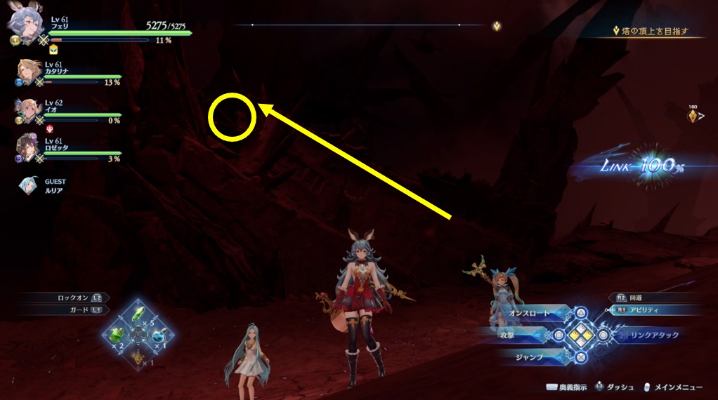 ヴォルカンボーラ・ニヒラと戦った場所から脱出する坂を登っている途中の右側。浮いている岩の上。
