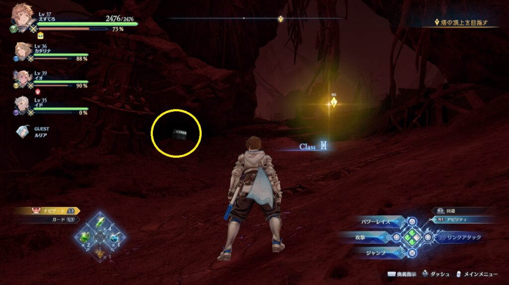 ヴォルカンボーラ・ニヒラと戦った場所から脱出する坂を登っている途中の右側
