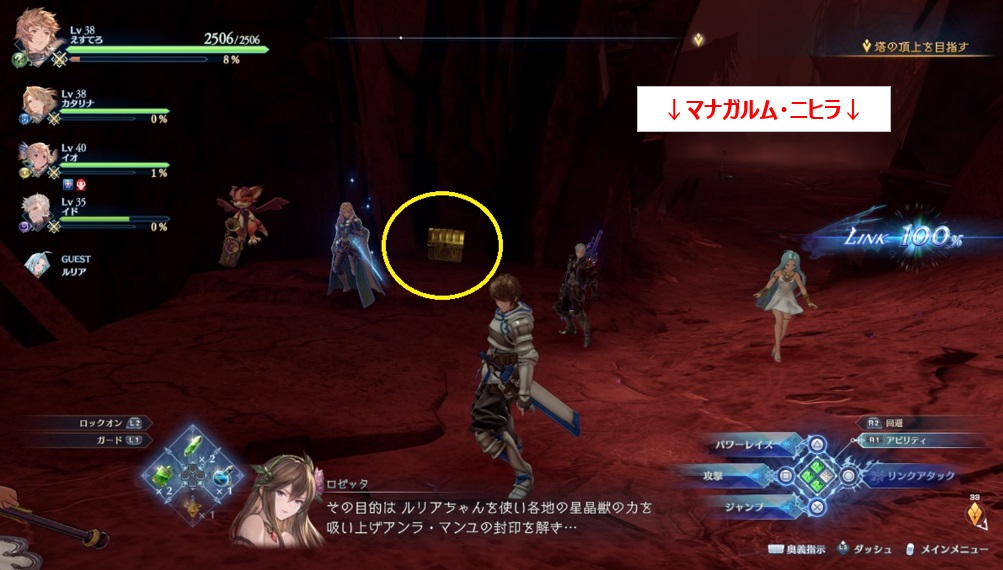 マナガルム・ニヒラを倒し進んだ道で右側に見える画像の段差の上(宝箱⑭の場所の少し先)。