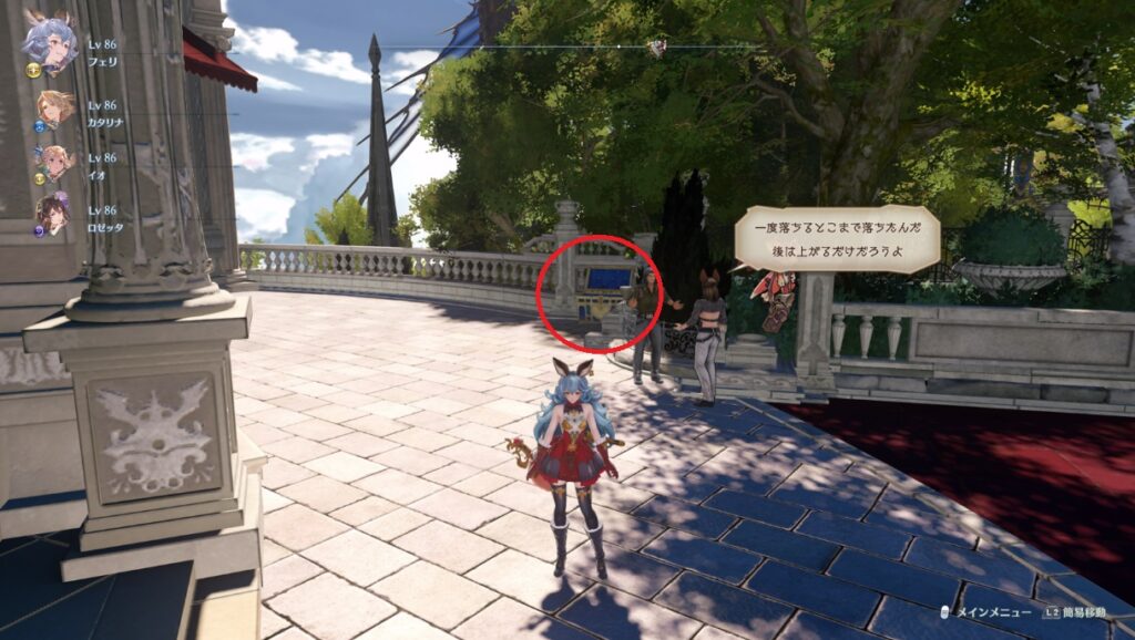 【蒼銀の鍵】池のそばの建物の屋根を登りバルコニーに宝箱