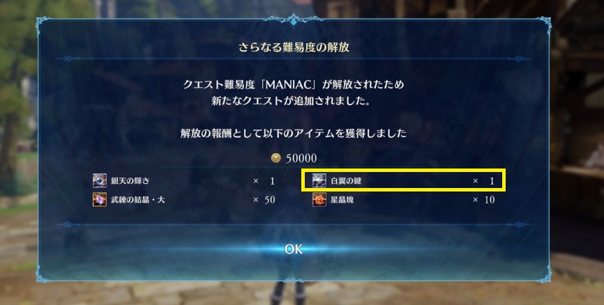 白翼の鍵難易度「MANIAC」解放時第Ø章クリア後