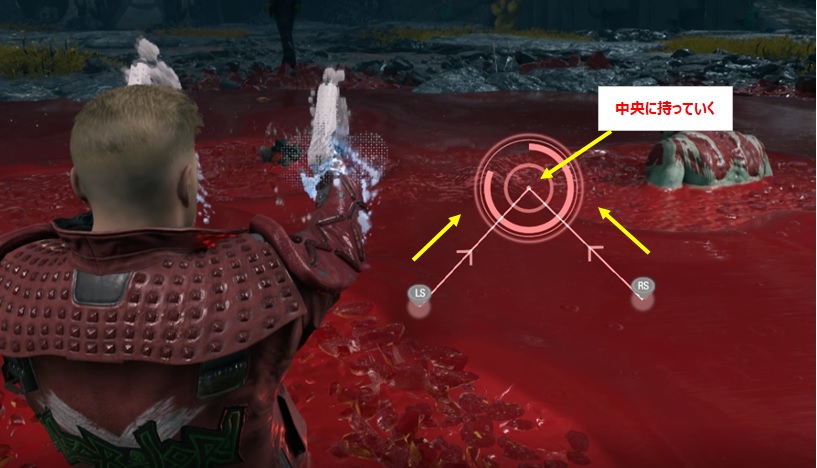 両方のスティックを中央の円に持っていく