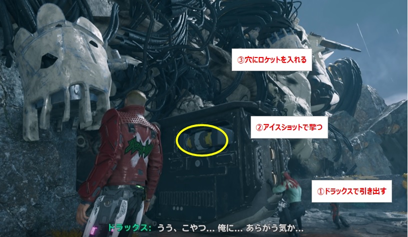 →動かす地点は青色で表示されます - リアクターに登って「ガモーラ」で鎖を切る