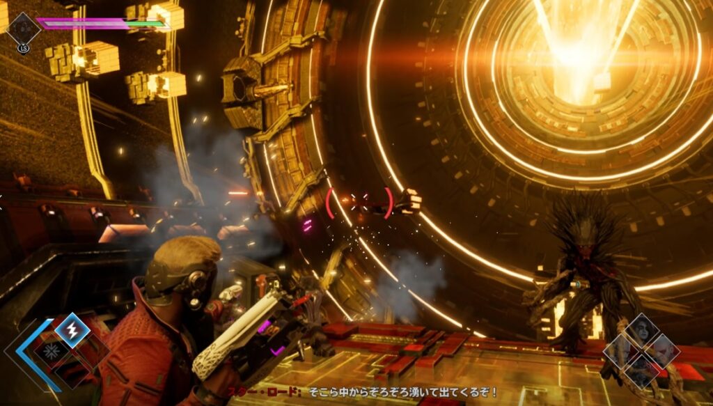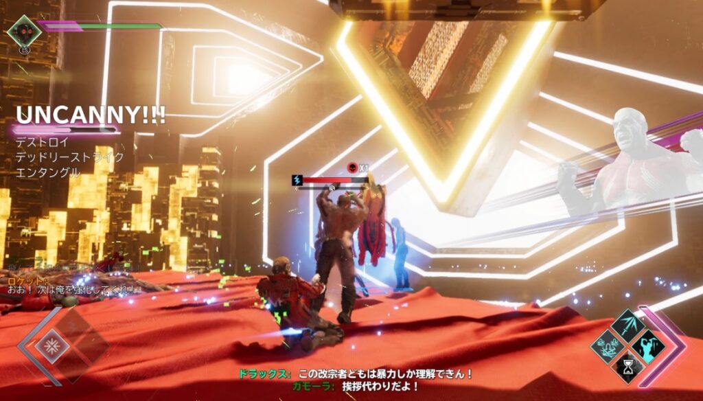 「ガモーラを追いかけない」とチャプター8内ではガモーラが戦線離脱。この後も戦闘が続くので、若干ですが難易度が上がります