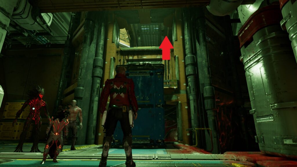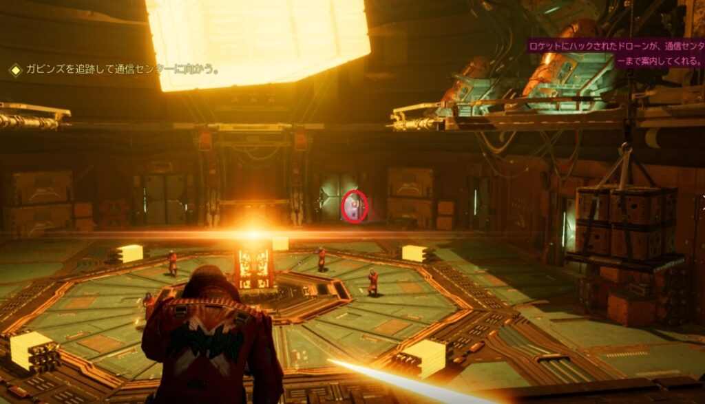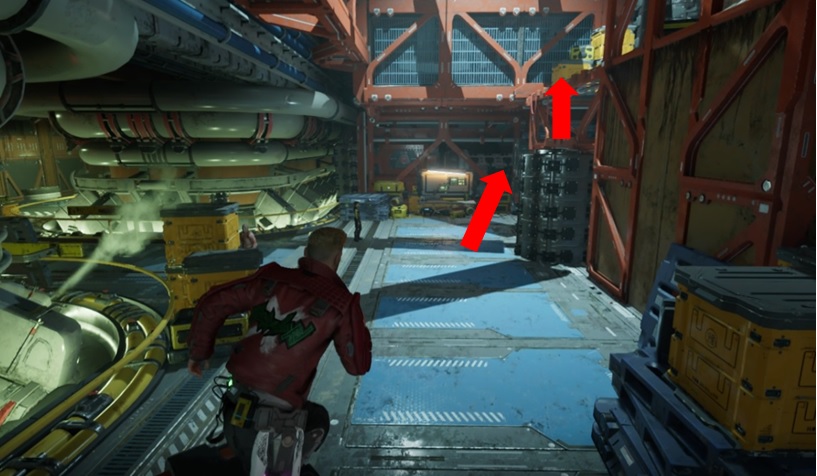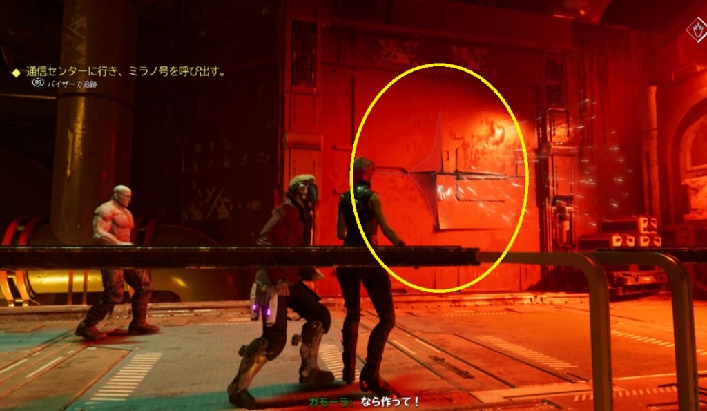 「ガモーラを追いかける」と直後に足場が崩れ、その時にガモーラが主人公を助けます。結果として、ガモーラはレイカーを追走できなくなります。画像のセリフ後にすぐ追いかけないといけないのでタイミングは結構シビア。