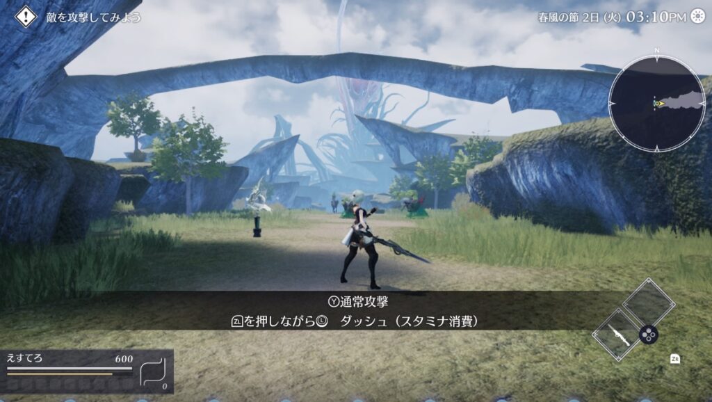 第1話はチュートリアル兼ストーリーみたいな感じなので、オレンジの!を目指して移動していく。