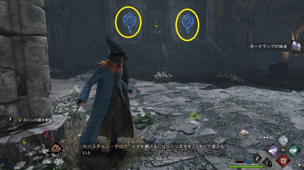 ・ルーンのシンボル3つに呪文を当てて扉を開ける。