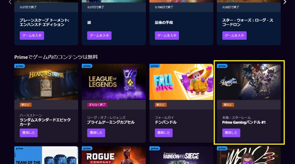プライムゲーミングはAmazonプライム会員限定のサービスなので、当然ながら崩壊スターレイルのアイテムが貰えるキャンペーンもAmazonプライム会員限定ということです。
