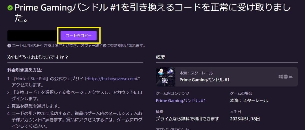 Amazonプライム会員のゲーム内特典アイテム【崩壊スターレイル】