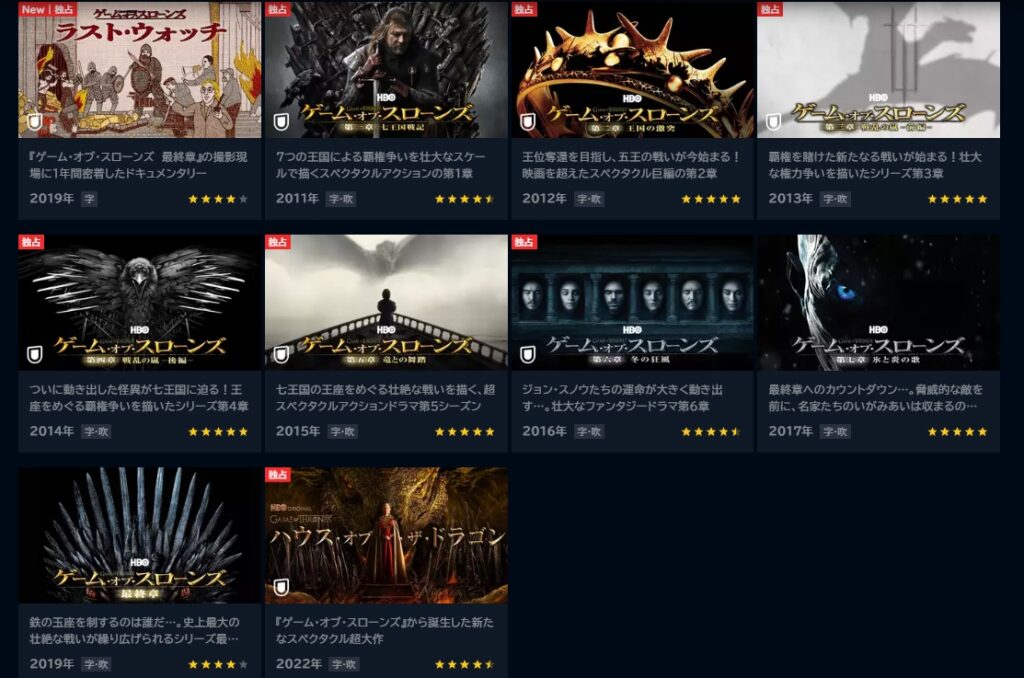U-NEXTではゲームオブスローンズの前日譚となる【ハウスオブザドラゴン】も視聴できますし、トータルで見ればかなりお得に利用できると思います。
