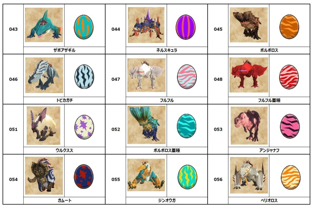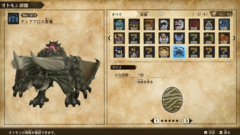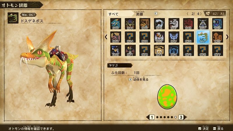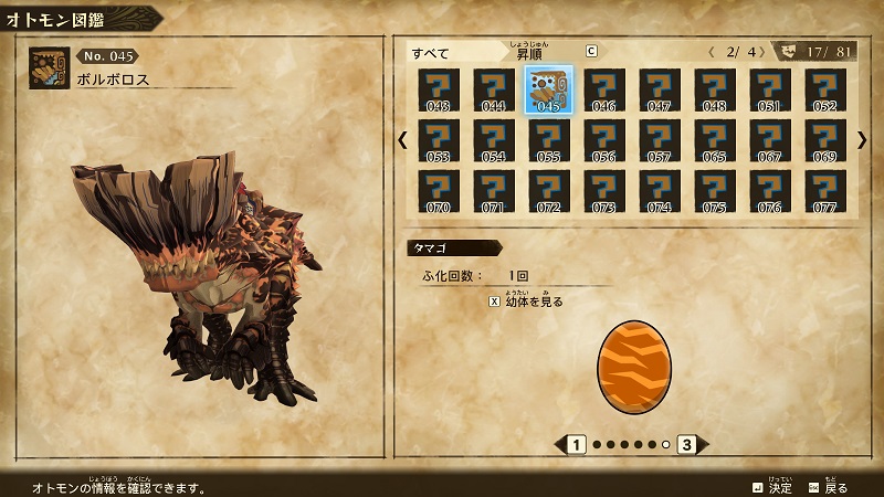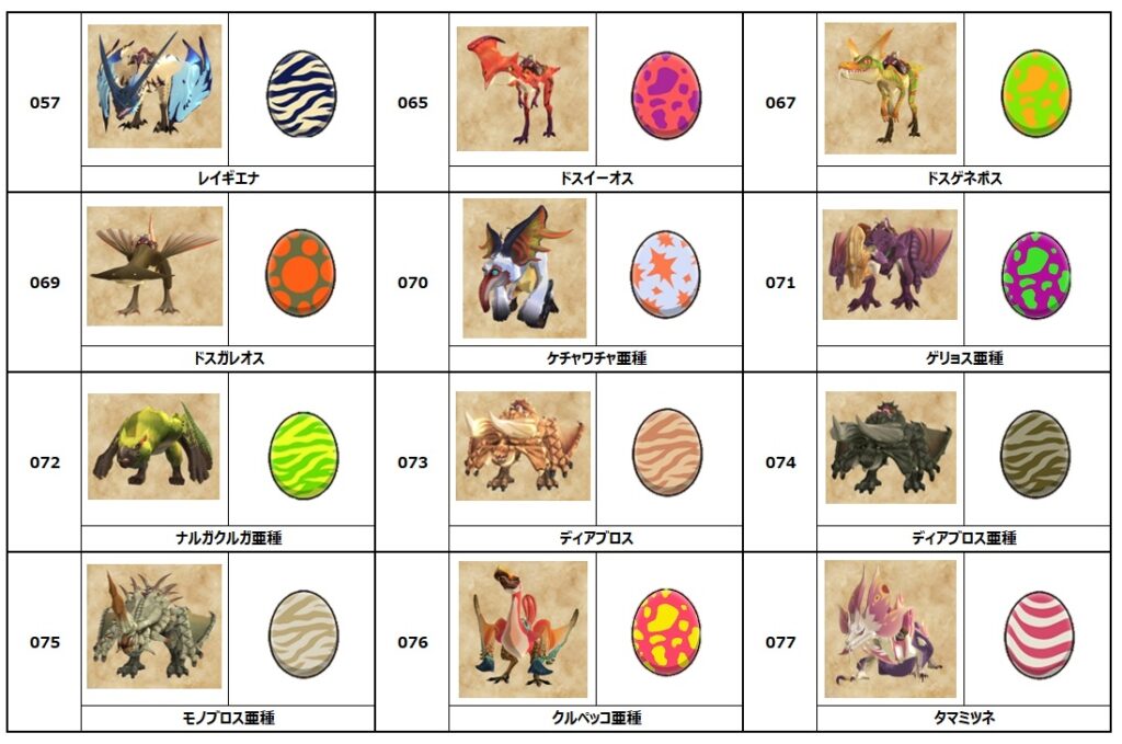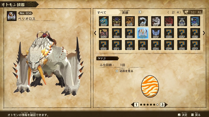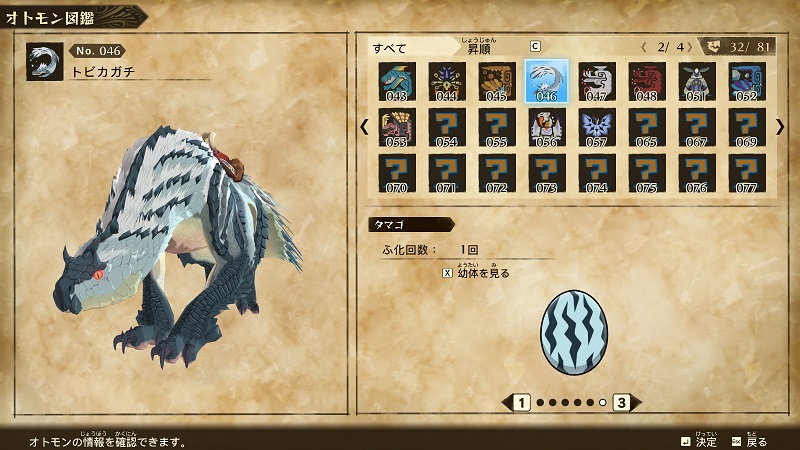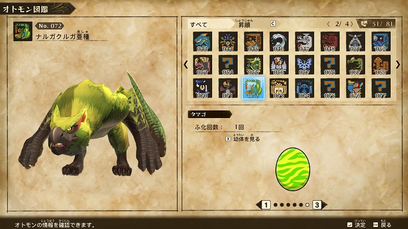 【コンプ済】オトモン図鑑NO.043~077[タマゴの模様・色判別用]【モンハンストーリーズ2】 | えすてろゲーム研究所