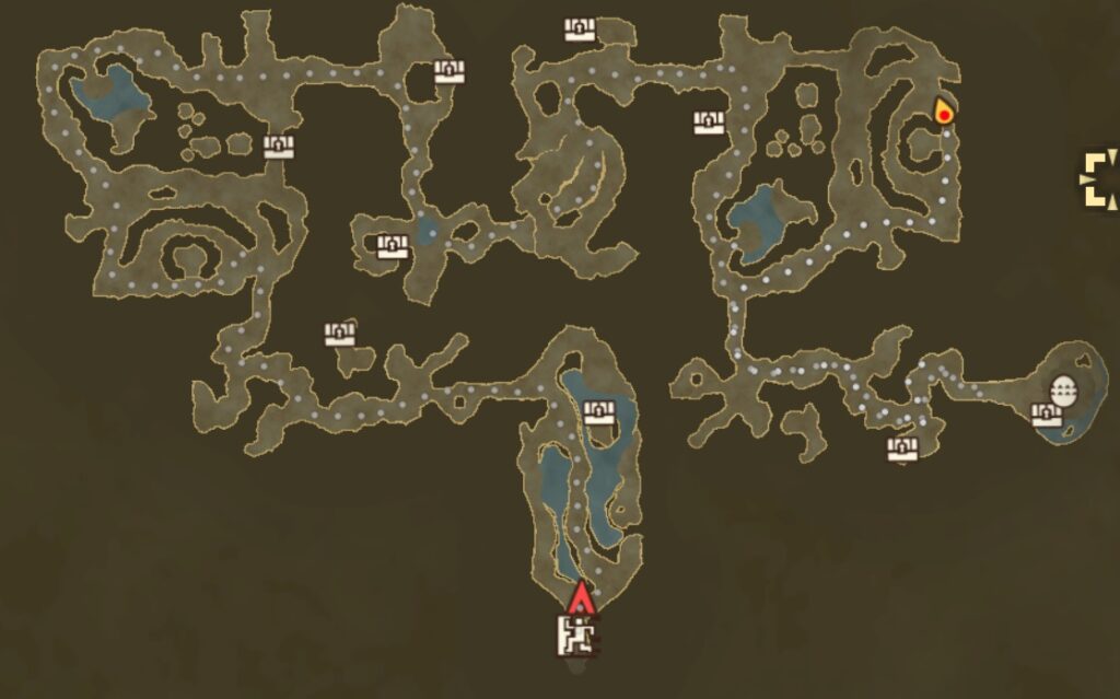 マップ上に鉱石が大量にあるので、鉱石素材や護石などを拾いまくるマップw 「ツタ登り」があれば宝箱も全部回収できるので、連れてくるとよい。