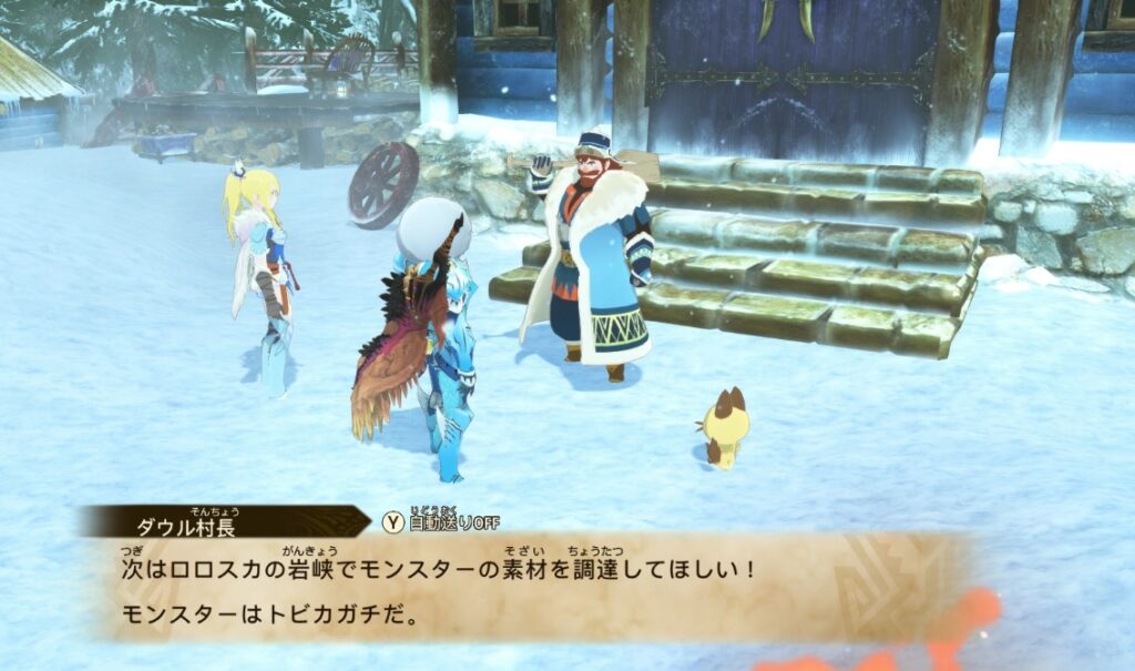 続いてのおつかいは、ロロスカの岩峡でのモンスター素材集め。トビカガチを倒して素材を収集するのが今回のお仕事になります。