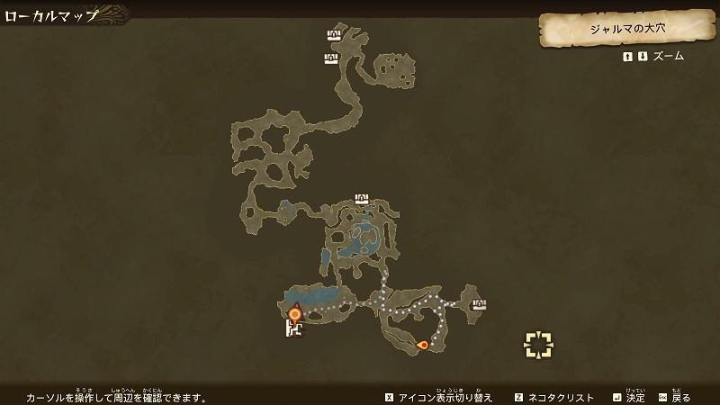 →そこから北に行くと「ジャルマの大穴」。キングモンスター「モノブロス亜種」がいる少し先です。