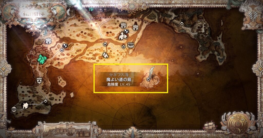 魔導士になるには分かつ大海にある【魔よい道の島】に行きます。ここへ行くには自前の船が必要となる為、事前に商売の匂いをクリアして船を入手しておかないといけません。