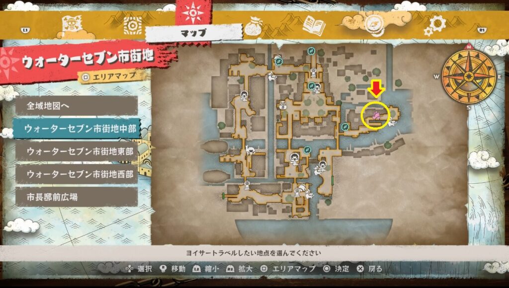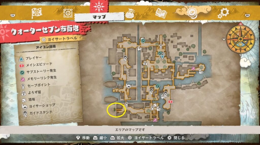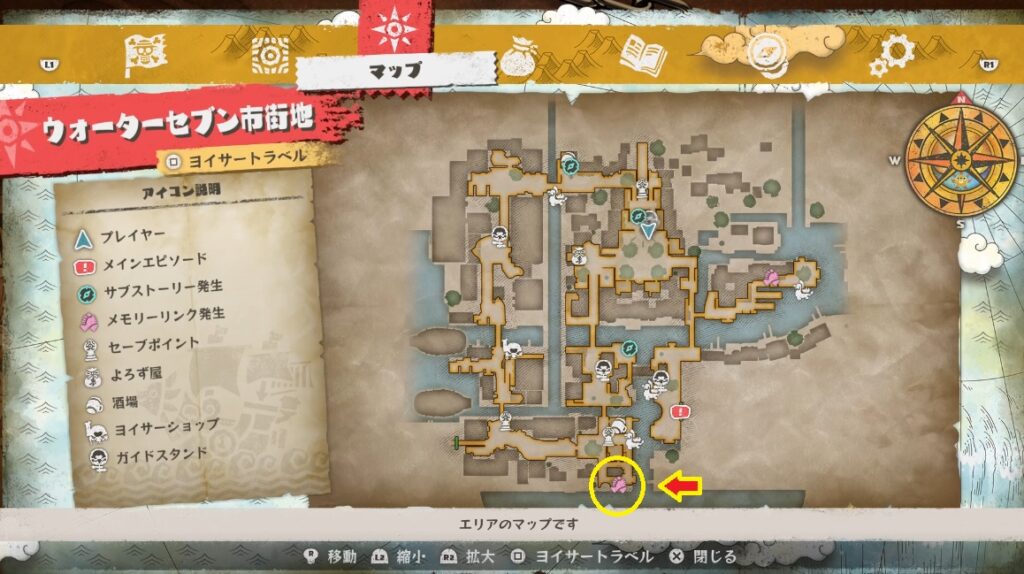後半の記憶のもつれは地下水路の中。ウォーターセブン市街地の南西の入口から地下水路に入り、ヤガラブルで移動するとすぐにほつれが見つかります。