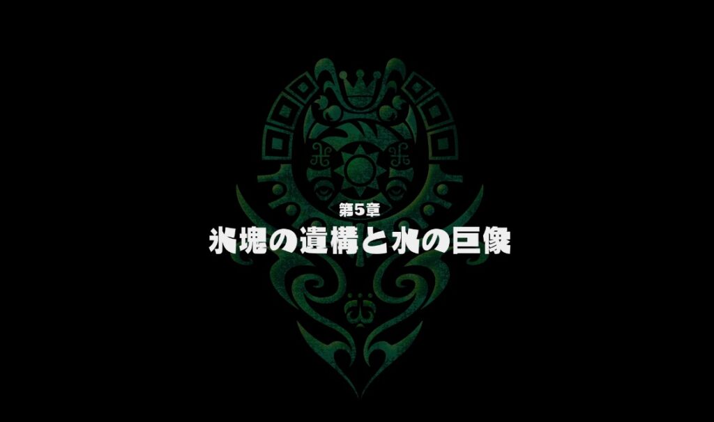 第5章のメインストーリーの流れをまとめました。第5章は氷塊の遺構のダンジョン謎解きから巨像との戦闘のパートになっています。