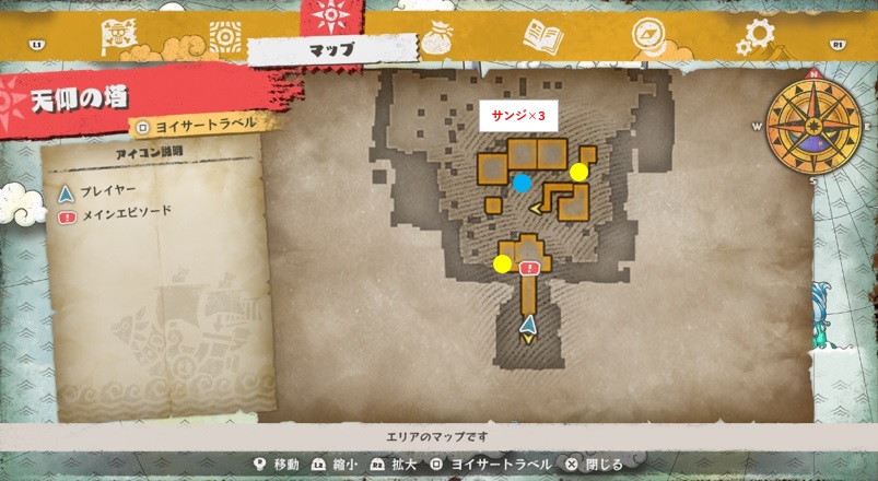 ※水色:キューブのかけら、黄色:宝箱、赤色:宝箱(鍵付き)