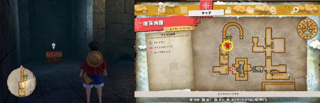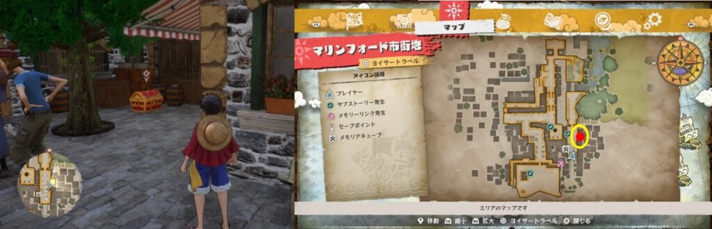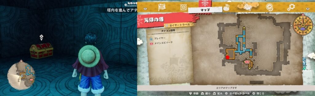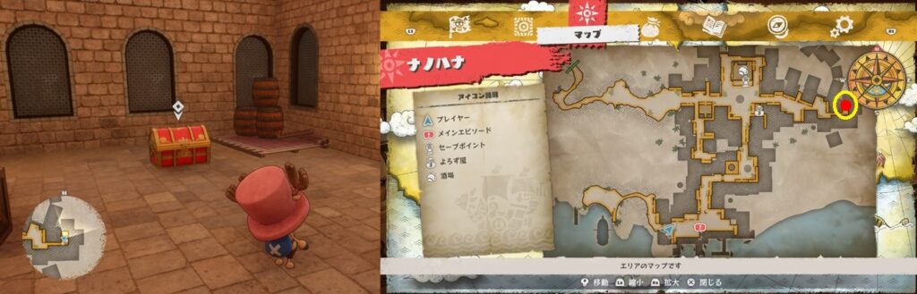 鍵付きの宝箱は全部で22個。全て開けるとトロフィー「好きなものはお金とみかん!!」を獲得。冒険目標に各町での宝箱開封の目標があるので、取りこぼしている場合は冒険目標を見ればエリアくらいは絞ることができます。