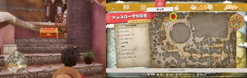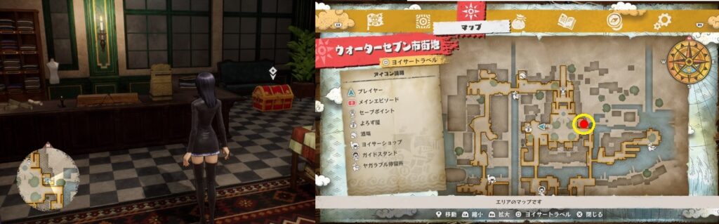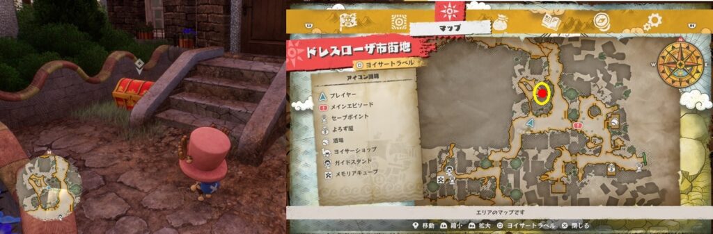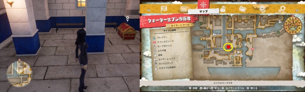 鍵付きの宝箱は全部で22個。全て開けるとトロフィー「好きなものはお金とみかん!!」を獲得。冒険目標に各町での宝箱開封の目標があるので、取りこぼしている場合は冒険目標を見ればエリアくらいは絞ることができます。