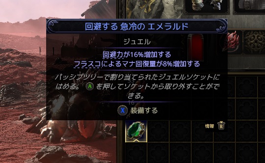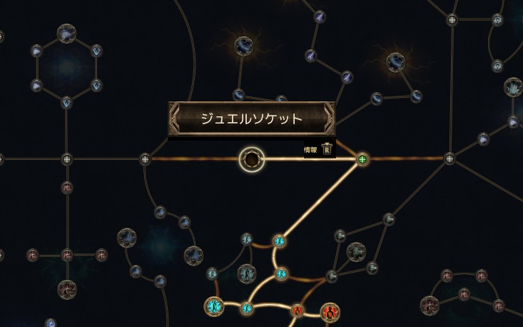 パッシブツリーを進めていくとたまに出てくるのがジュエルソケット。これが何なのかというと名前の通りでジュエル(宝石)を嵌めることの出来るソケットです。