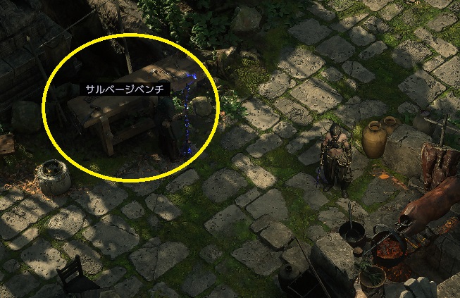 野営地などにおいてあるサルベージベンチを活用して不要な装備品を素材にする方法があります。