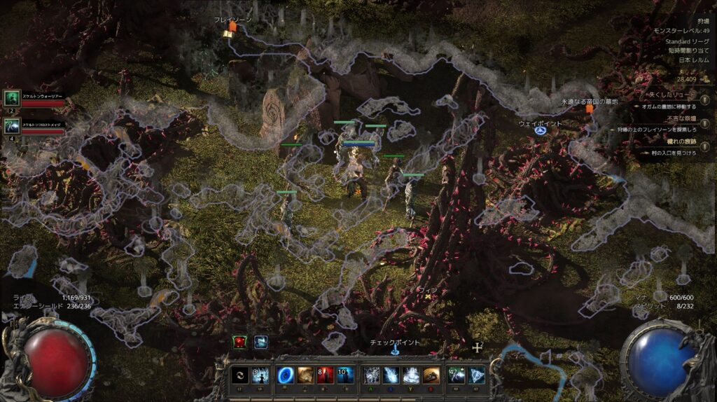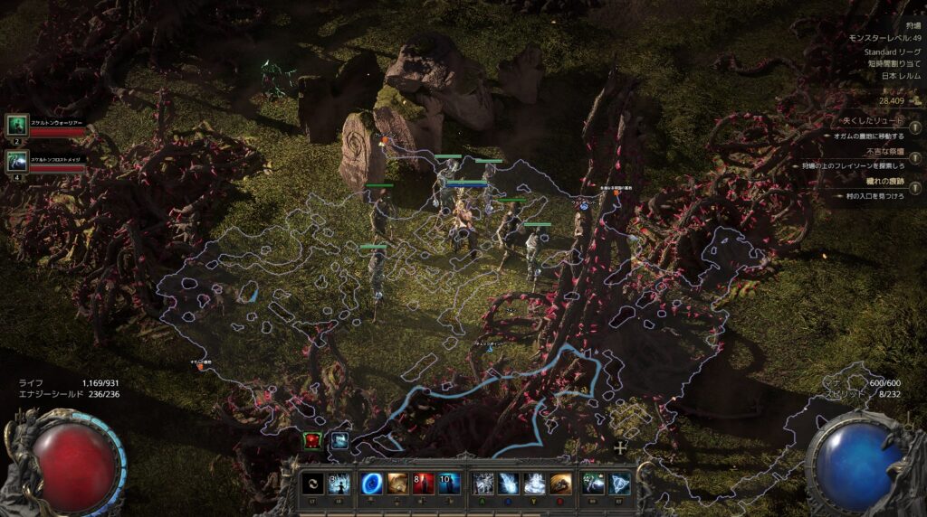 ライフバーを表示させるとこんな感じになります。雑魚モンスターのHPが分かりやすくなるので便利。ミニオンのHPも表示されます。
