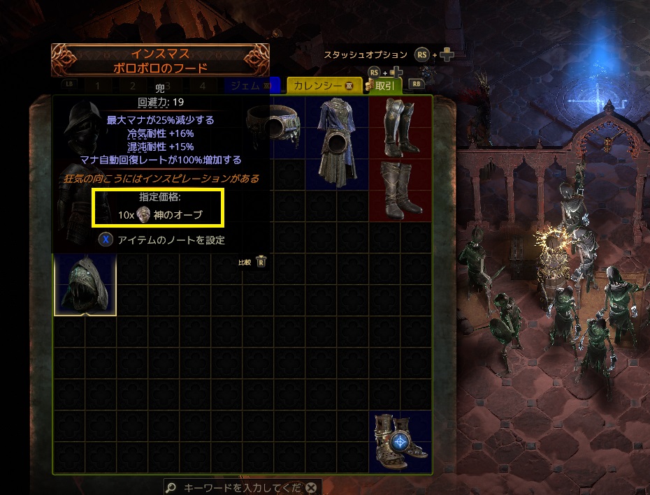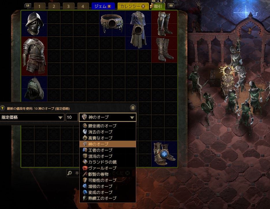 それなりの装備品は高貴のオーブや神のオーブで取引されていることが多いです。