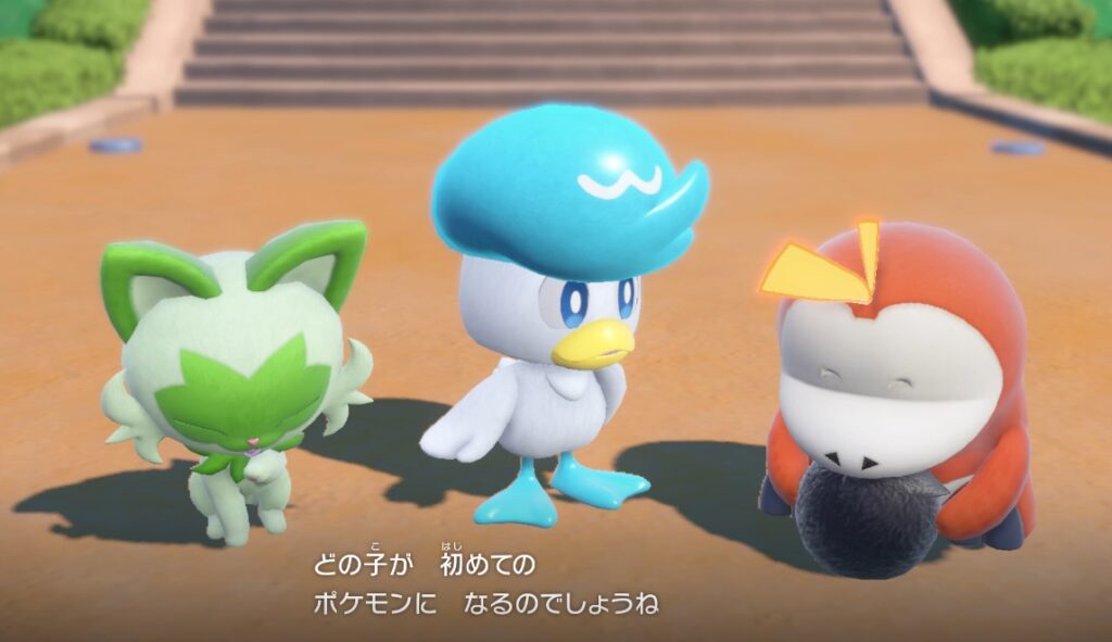 ニャオハ・クワッス・ホゲータから一匹を選んで連れて行く。