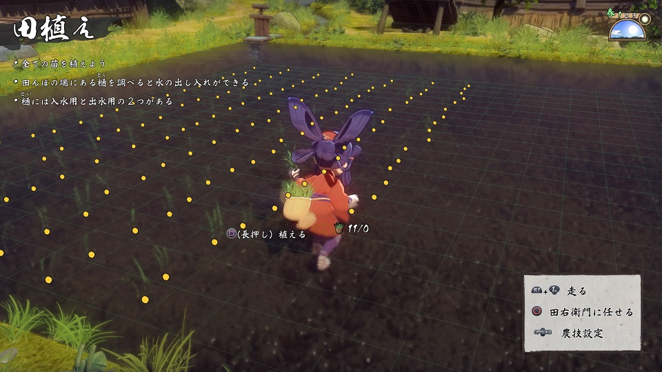 これをわたしなりに解釈して、ゲーム内の稲作作業を実際にやってみました。